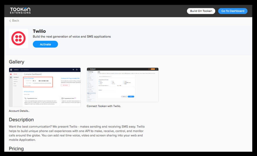 Step 3: Go to Tookan extension and activate Twilio. Once you click on activate you will be redirected to your Tookan dashboard