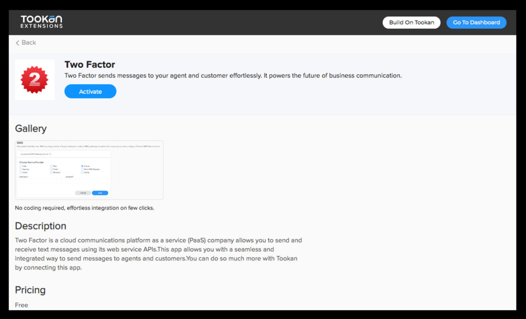 Step 3: Go to Tookan extension and activate Two Factor. Once you click on activate you will be redirected to your Tookan dashboard