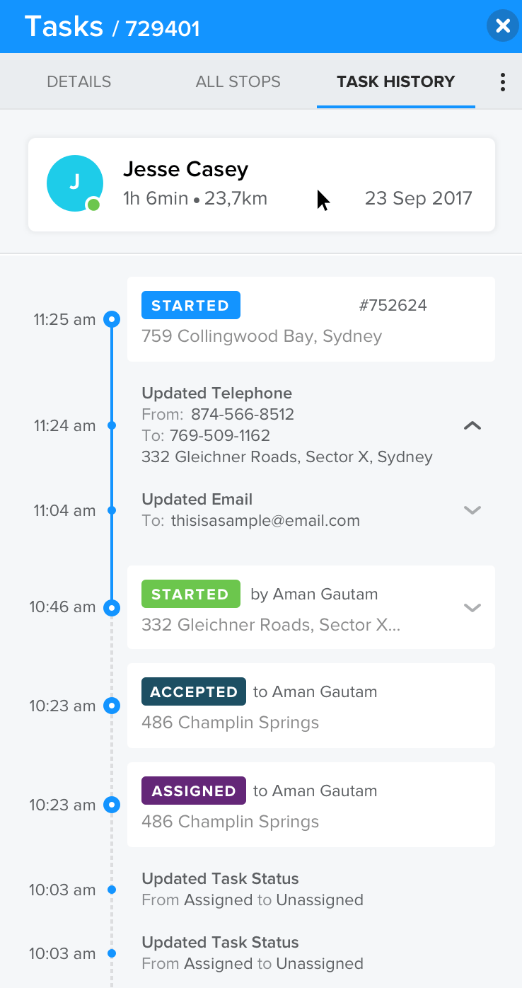 The task Timeline gives an optimised view of the details of a task along with up-to- date